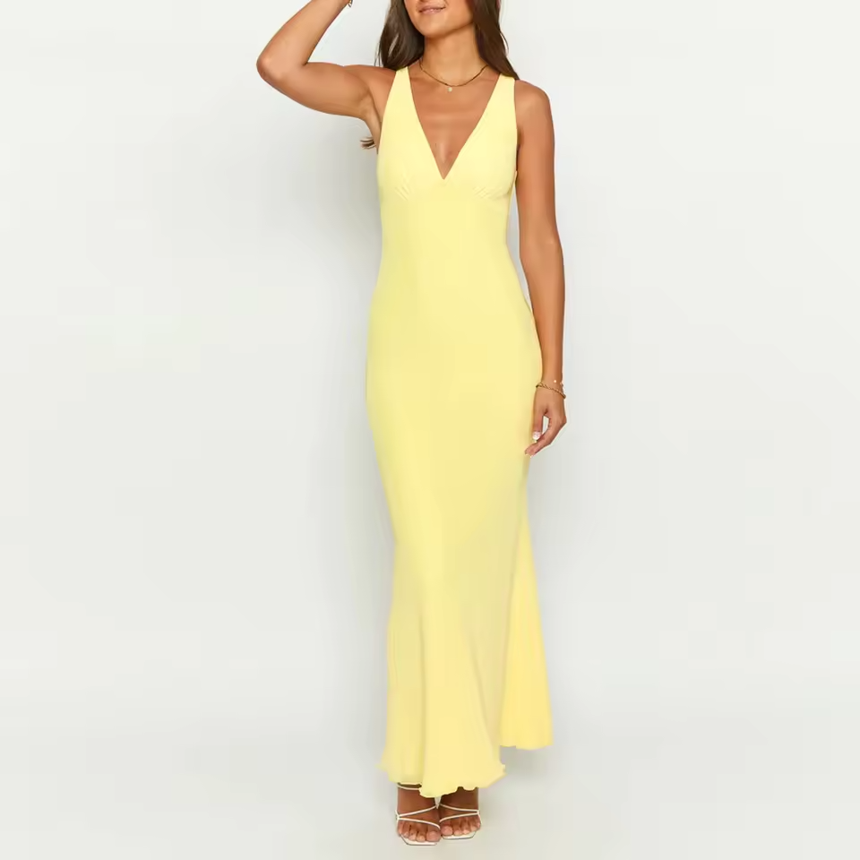 Turn heads in this bold Y2K-inspired floral maxi dress, designed with a flattering V-neck, backless cut, and ruffle accents. Its slim-fitting shape and lightweight feel make it a standout choice for beach holidays or warm summer nights. The ankle-length silhouette creates a sleek look with just the right hint of flair.