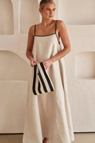 Step into effortless elegance with this flowing beige maxi dress, perfect for any occasion. Designed with thin shoulder straps and a minimalist silhouette, this dress offers a sophisticated yet relaxed look. The breathable cotton fabric ensures comfort, making it ideal for warm-weather wear. Whether for casual outings or elegant evenings, this dress is a versatile wardrobe essential.