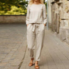 Bring ease and elegance into your everyday routine with this soft linen-inspired set, designed to blend comfort and relaxed sophistication. Featuring a button-down top and adjustable drawstring pants, this versatile set offers effortless style whether you're lounging at home or heading out for a casual day. Its lightweight feel and thoughtful tailoring create a polished yet easygoing look.