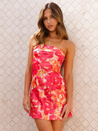 Jasmine - Floral Print Mini Dress with Strapless Backless Design
