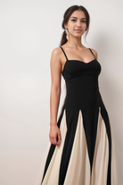 Maris - Timeless Elegance Maxi Gown Black White Satin Blend