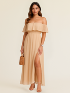 Mia - Off-Shoulder Maxi Dress with Polka Dot Print and High Slit